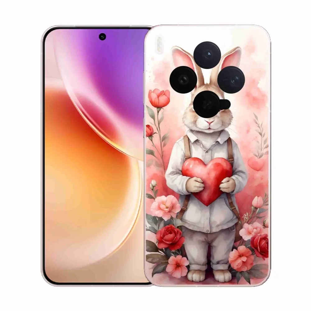 Pružný gélový obal mmCase s obrázkom na Vivo X300 - zajac so srdiečkom