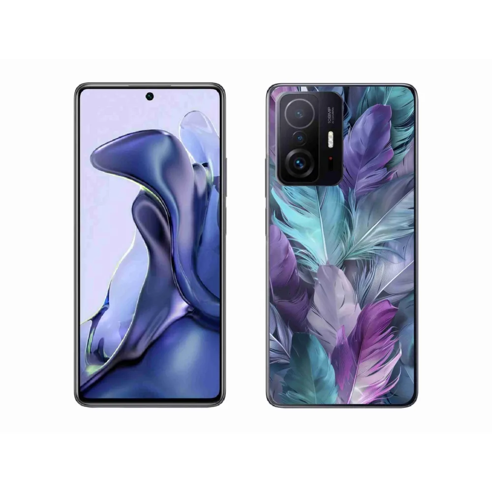 Pružný gélový obal mmCase s obrázkom na Xiaomi 11T Pro - farebné perie 2