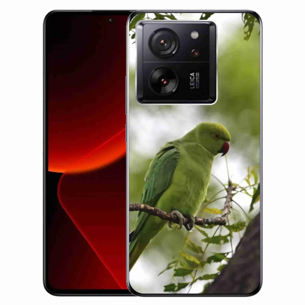 Zvieracie puzdro na Xiaomi 13T/13T Pro - zelený papagáj poskytuje všetky výhody gélových krytov, a to v zaujímavom dizajne.