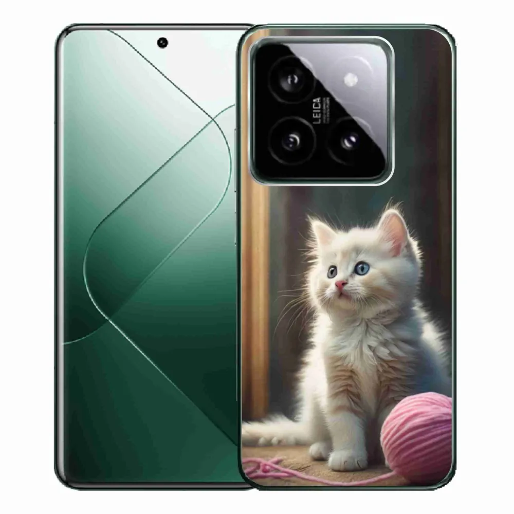 Pružný gélový obal mmCase s obrázkom na Xiaomi 14 Pro - biele mačiatko 2