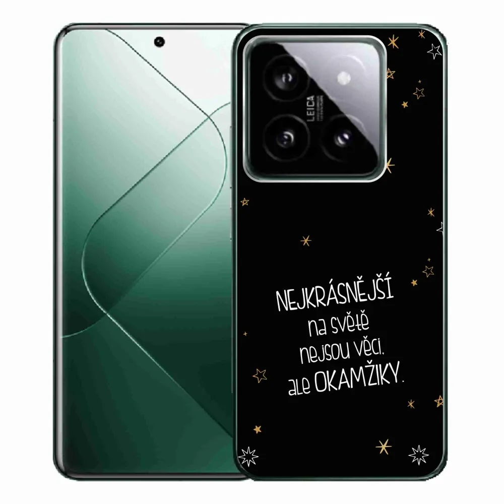 Pružný gélový obal mmCase s obrázkom na Xiaomi 14 Pro - citát 4 čierne pozadie