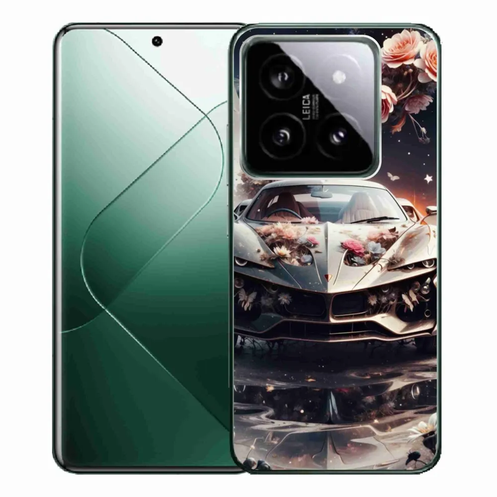 Puzdro na Xiaomi 14 Pro - kvetinový športový automobil poskytuje všetky výhody gélových obalov, a to v zaujímavom dizajne.