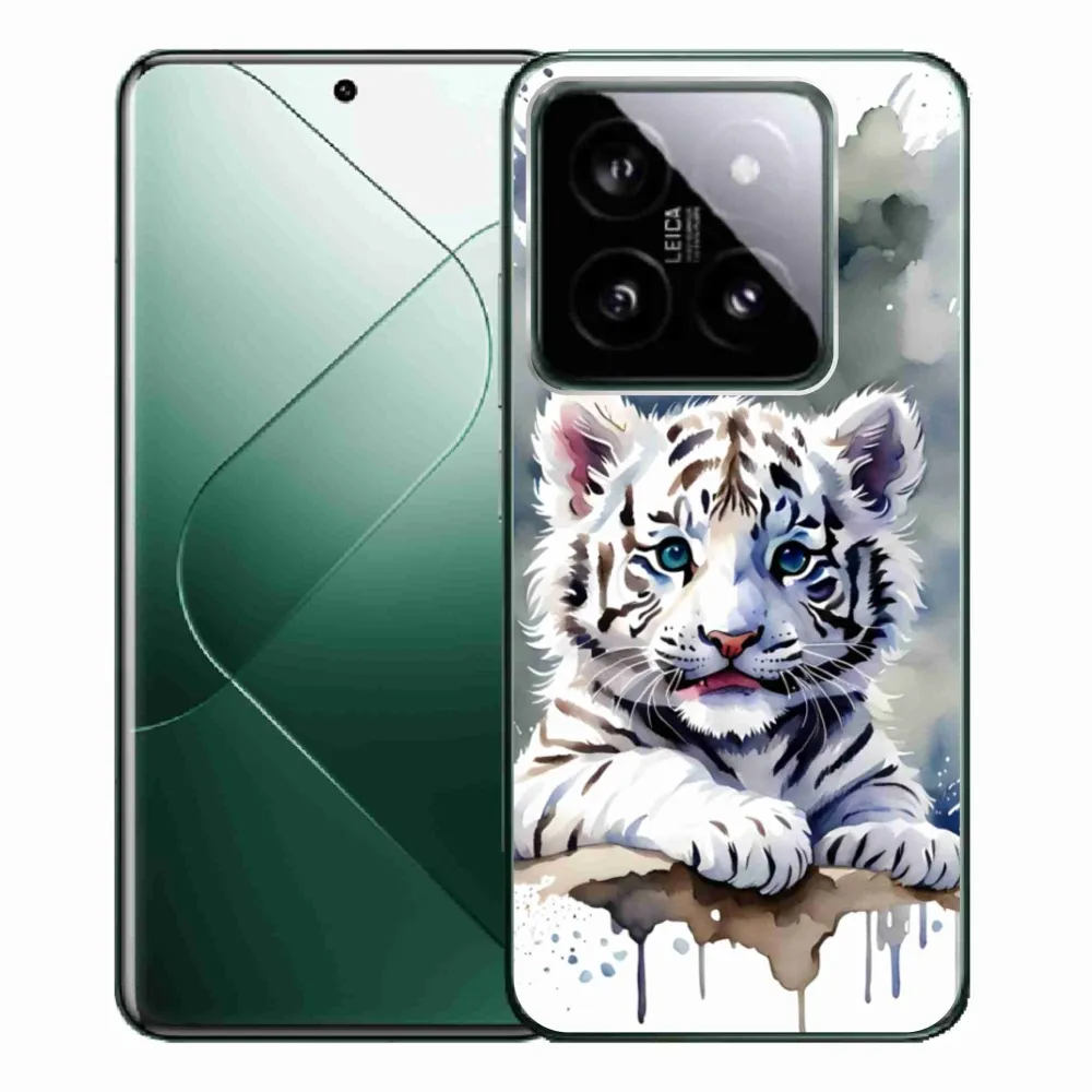 Psie púzdro na Xiaomi 14 Pro - mláďa bieleho tigra poskytuje všetky výhody gélových obalov, a to v zaujímavom dizajne.