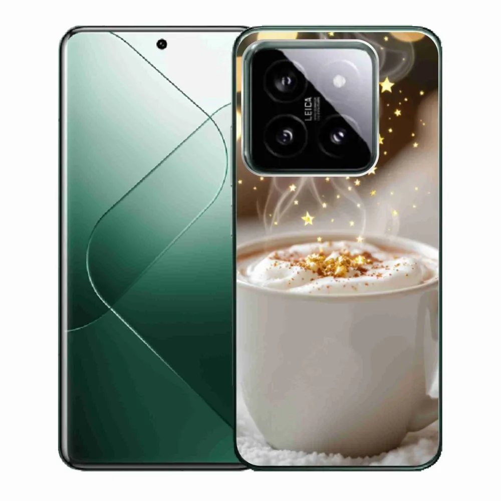Vianočné puzdro na Xiaomi 14 - vianočný horúci nápoj poskytuje všetky výhody gélových obalov, a to v zaujímavom dizajne.