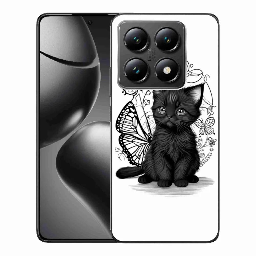 Pružný gélový obal mmCase s obrázkom na Xiaomi 14T - čierne mačiatko