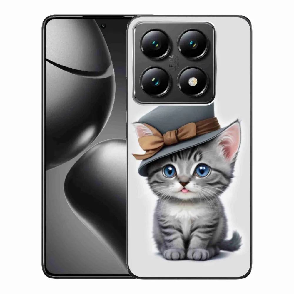 Pružný gélový obal mmCase s obrázkom na Xiaomi 14T Pro - mačiatko s klobúkom