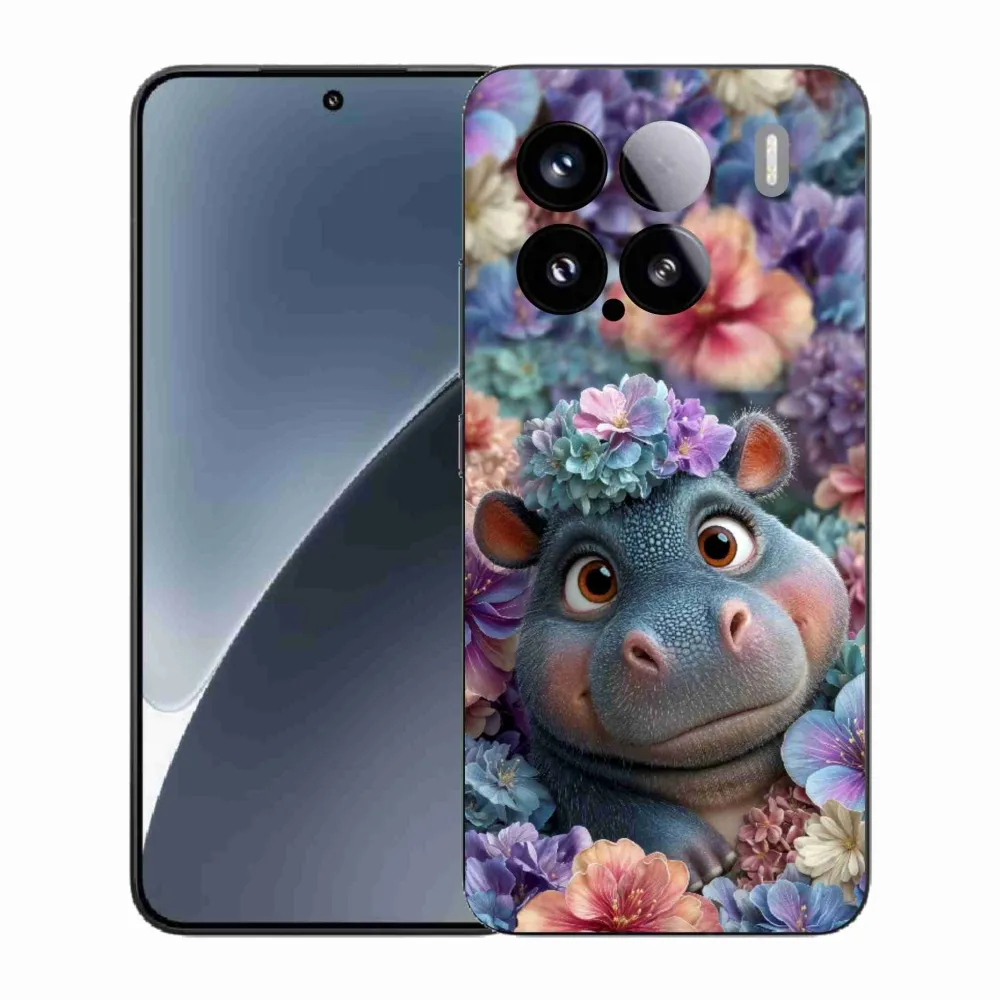 Pružný gélový obal mmCase s obrázkom na Xiaomi 15 - hrošík v kvetoch