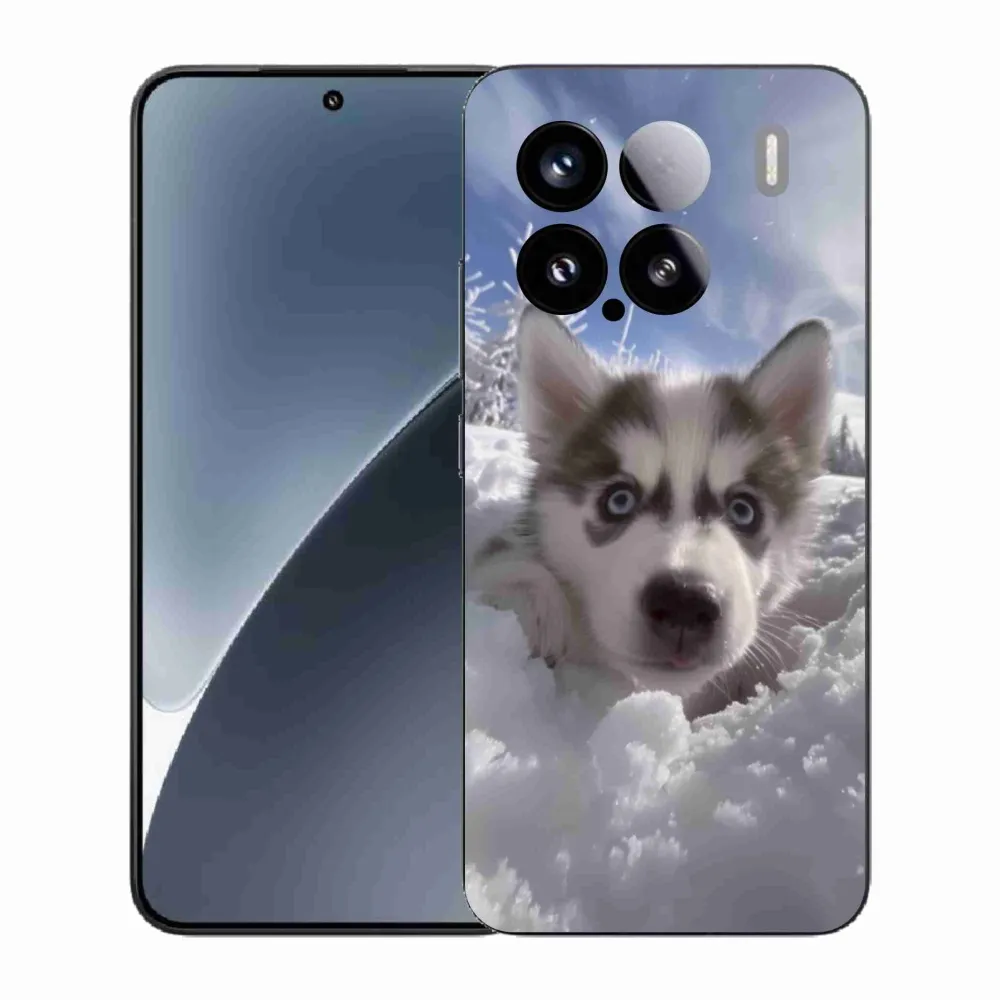 Psie púzdro na Xiaomi 15 - husky v snehu poskytuje všetky výhody gélových obalov, a to v zaujímavom dizajne.