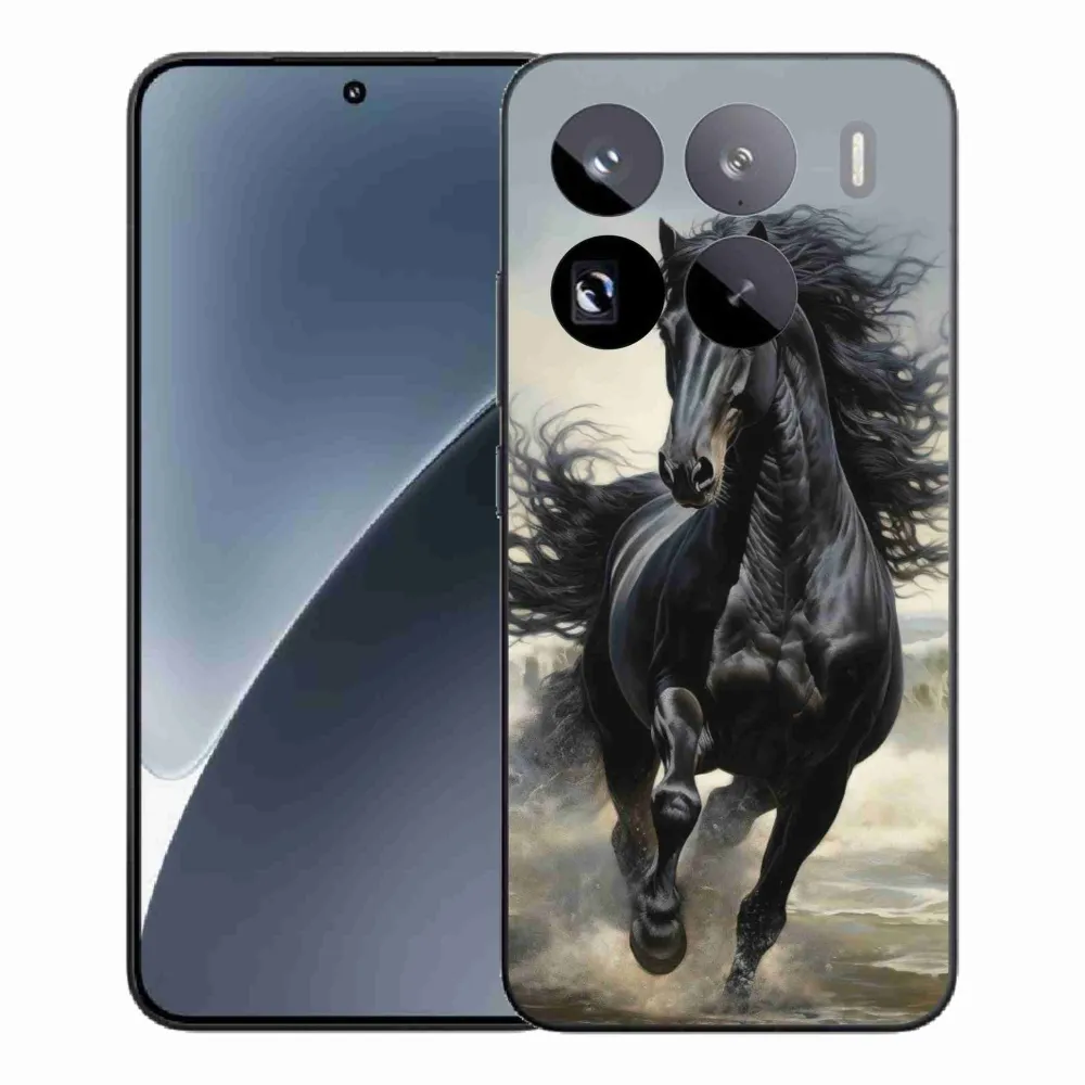 Pružný gélový obal mmCase s obrázkom na Xiaomi 15 Pro - bežiaci čierny kôň