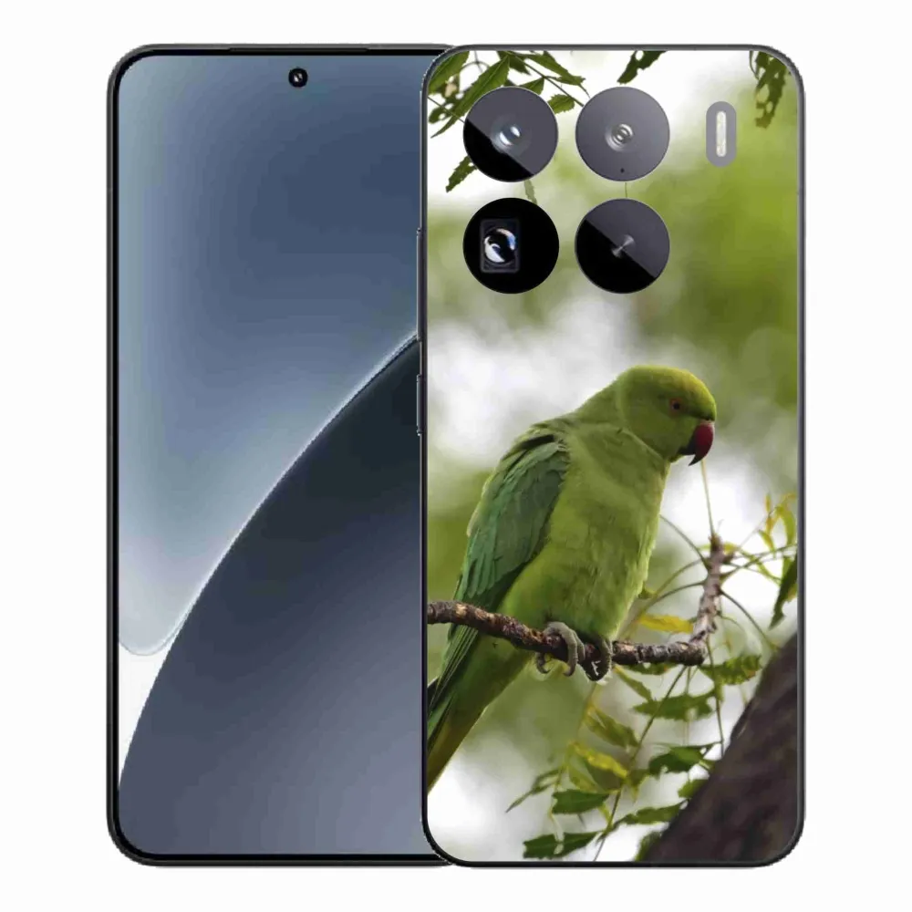 Zvieracie puzdro na Xiaomi 15 Pro - zelený papagáj poskytuje všetky výhody gélových krytov, a to v zaujímavom dizajne.