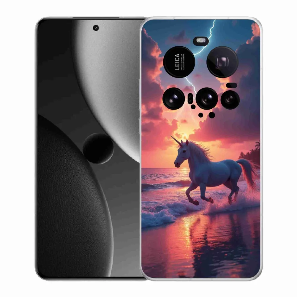 Pružný gélový obal mmCase s obrázkom na Xiaomi 15 Ultra - jednorožec na pláži