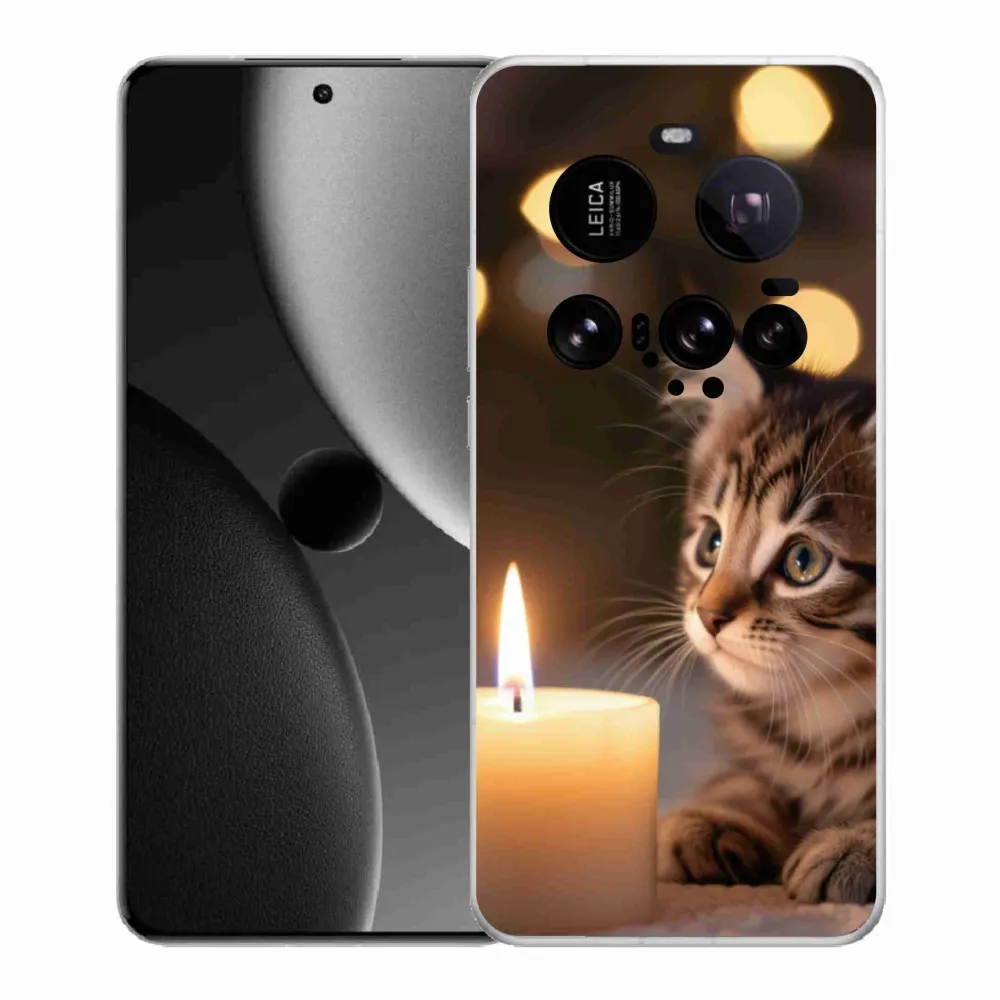 Pružný gélový obal mmCase s obrázkom na Xiaomi 15 Ultra - mačiatko a sviečka