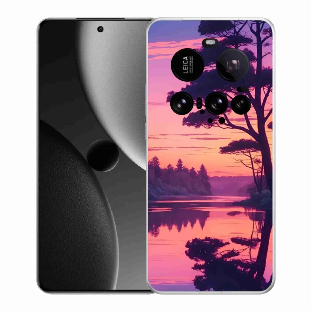 Púzdro na Xiaomi 15 Ultra - západ slnka nad jazerom poskytuje všetky výhody gélových obalov, a to v zaujímavom dizajne.