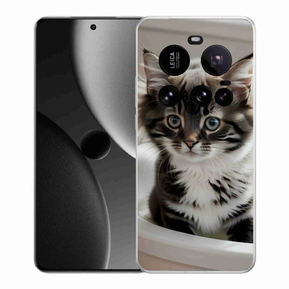 Mačacie púzdro na Xiaomi 15 Ultra - zvedavé mačiatko poskytuje všetky výhody gélových obalov, a to v zaujímavom dizajne.