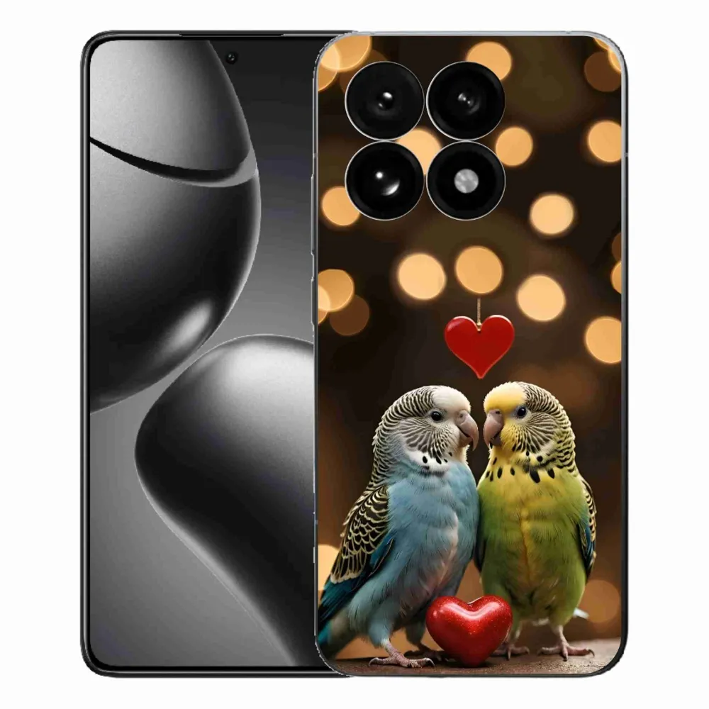 Vtáčie puzdro na Xiaomi 15T - zamilovaní papagáje poskytuje všetky výhody gélových krytov, a to v zaujímavom dizajne.