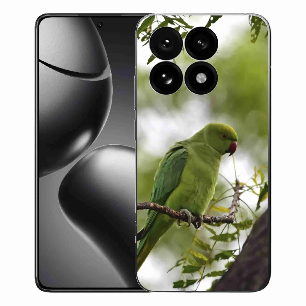 Zvieracie puzdro na Xiaomi 15T - zelený papagáj poskytuje všetky výhody gélových krytov, a to v zaujímavom dizajne.