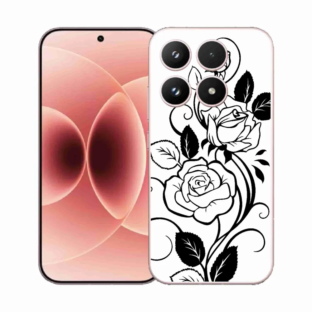 Kvetinové púzdro na Xiaomi 17 - čiernobiela ruža poskytuje všetky výhody gélových obalov, a to v zaujímavom dizajne.