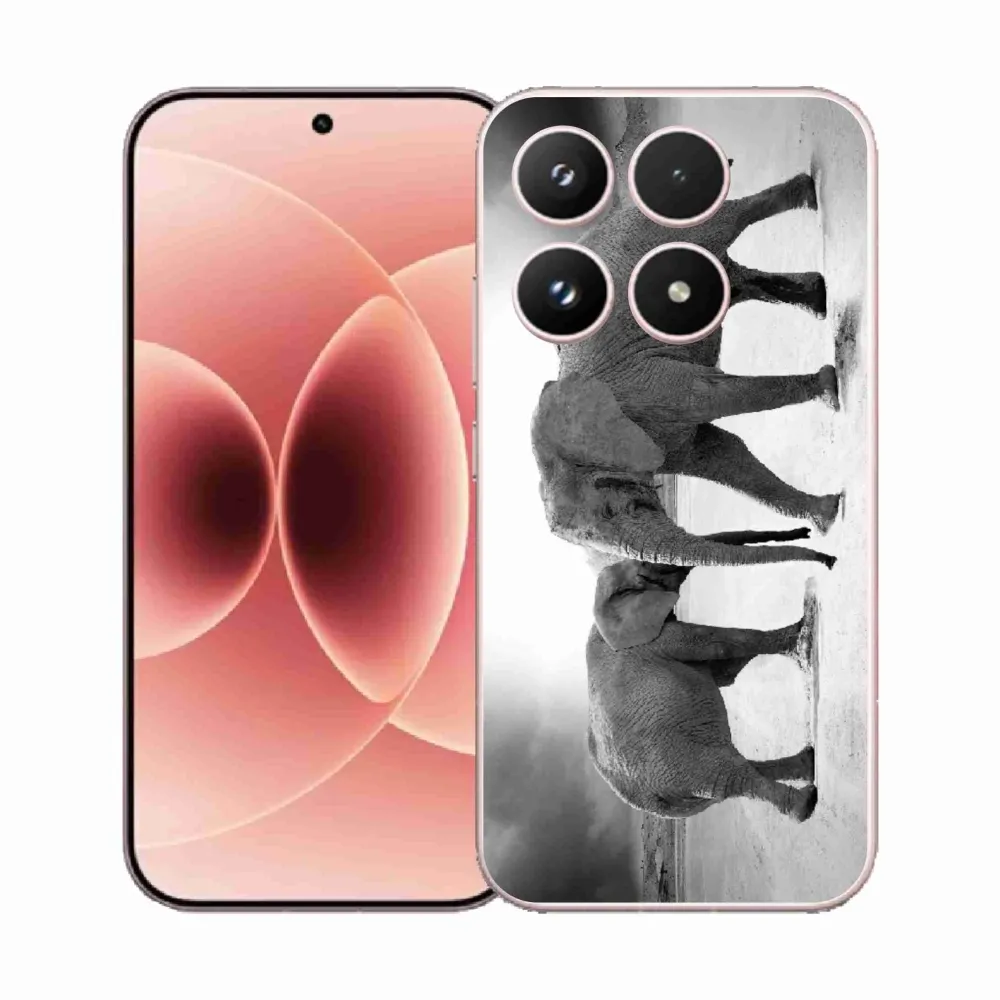 Zvieracie púzdro na Xiaomi 17 - čiernobieli slony poskytuje všetky výhody gélových obalov, a to v zaujímavom dizajne.