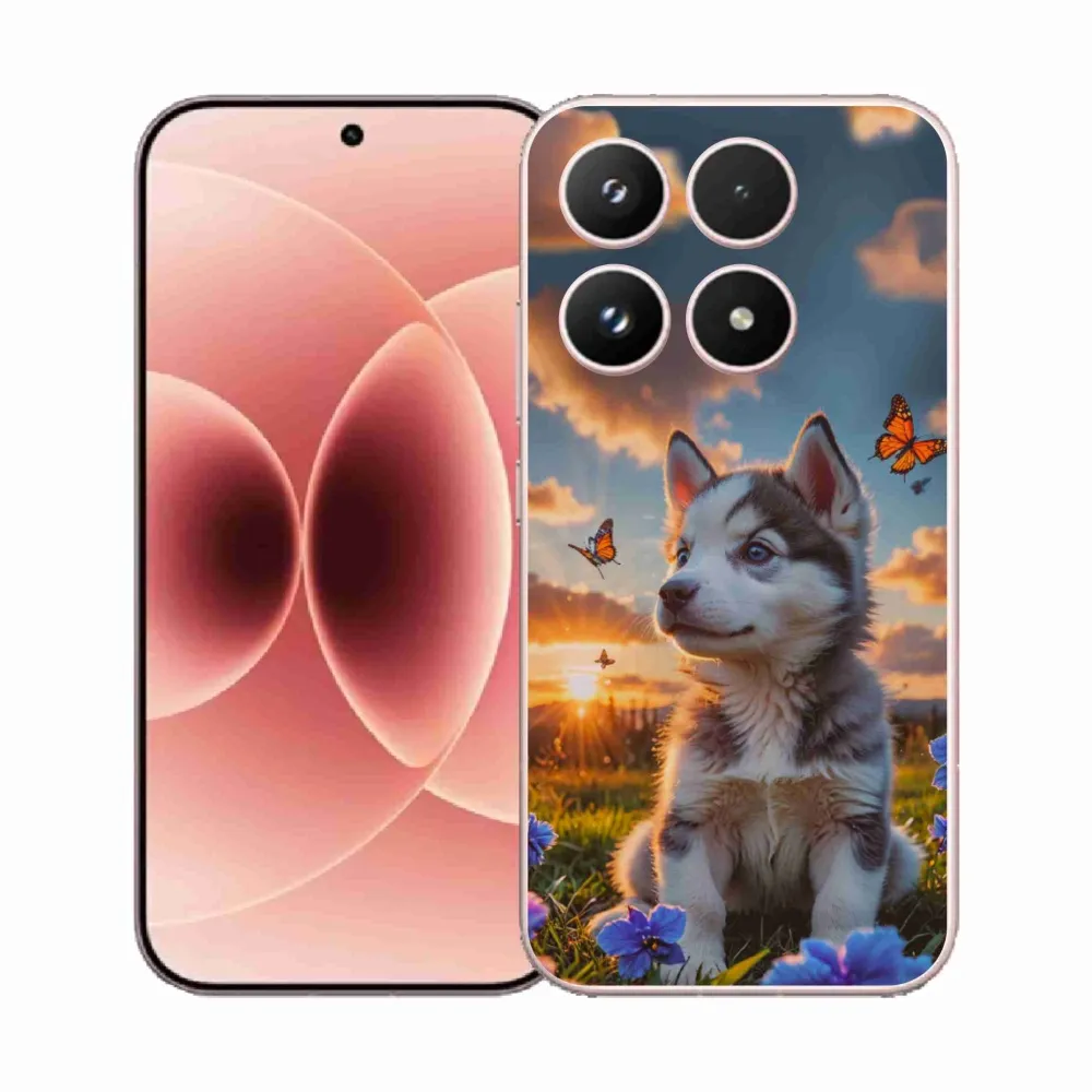 Psie púzdro na Xiaomi 17 - husky pri západe slnka poskytuje všetky výhody gélových obalov, a to v zaujímavom dizajne.