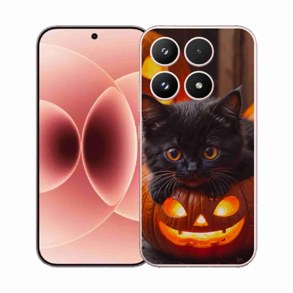 Pružný gélový obal mmCase s obrázkom na Xiaomi 17 - mačiatko a tekvica