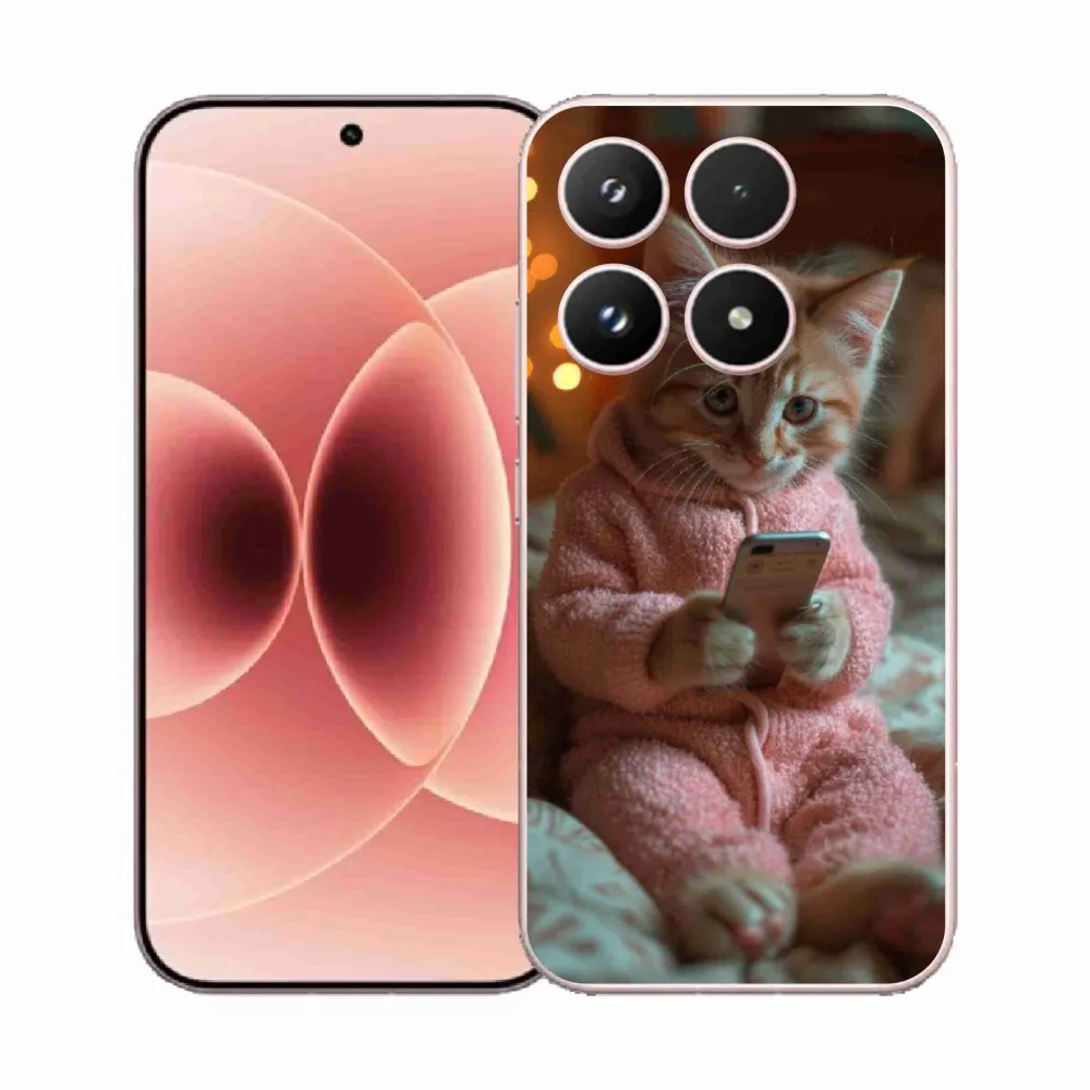 Pružný gélový obal mmCase s obrázkom na Xiaomi 17 - mačiatko s mobilom