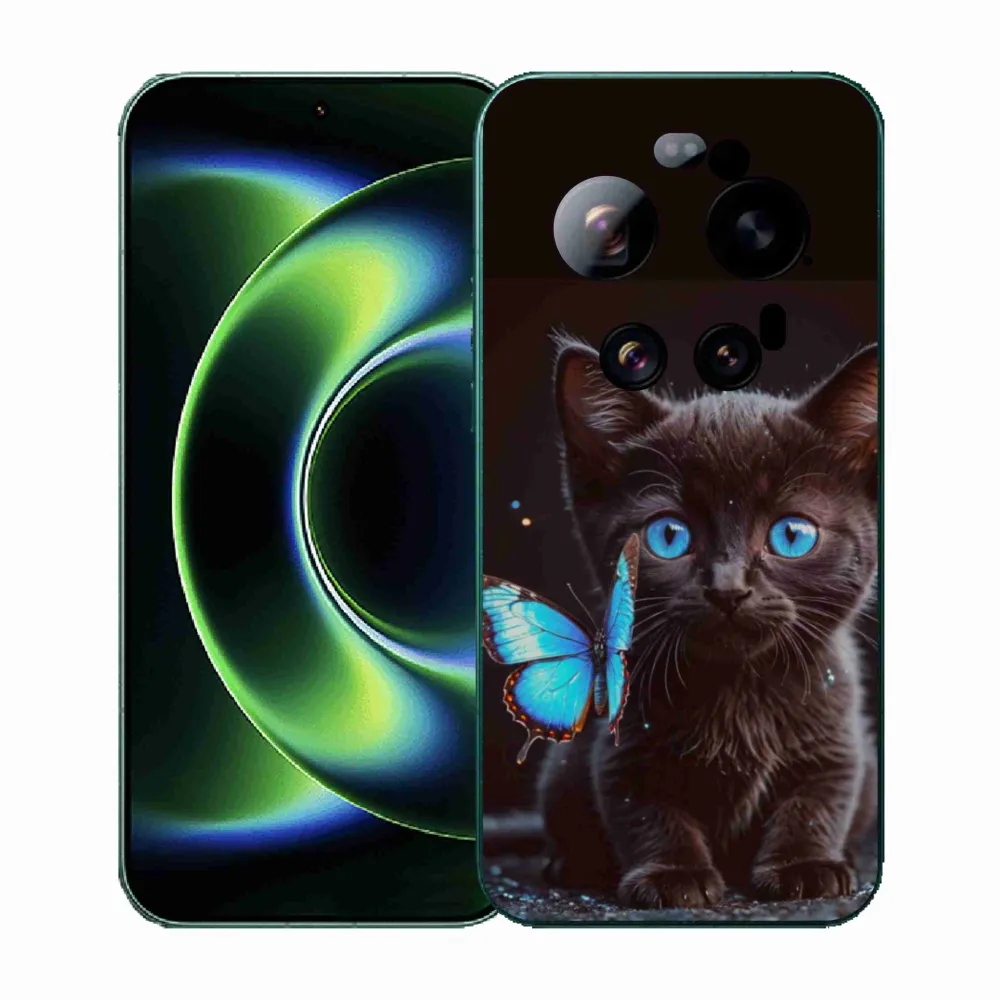 Pružný gélový obal mmCase s obrázkom na Xiaomi 17 Ultra - čierne mačiatko 3
