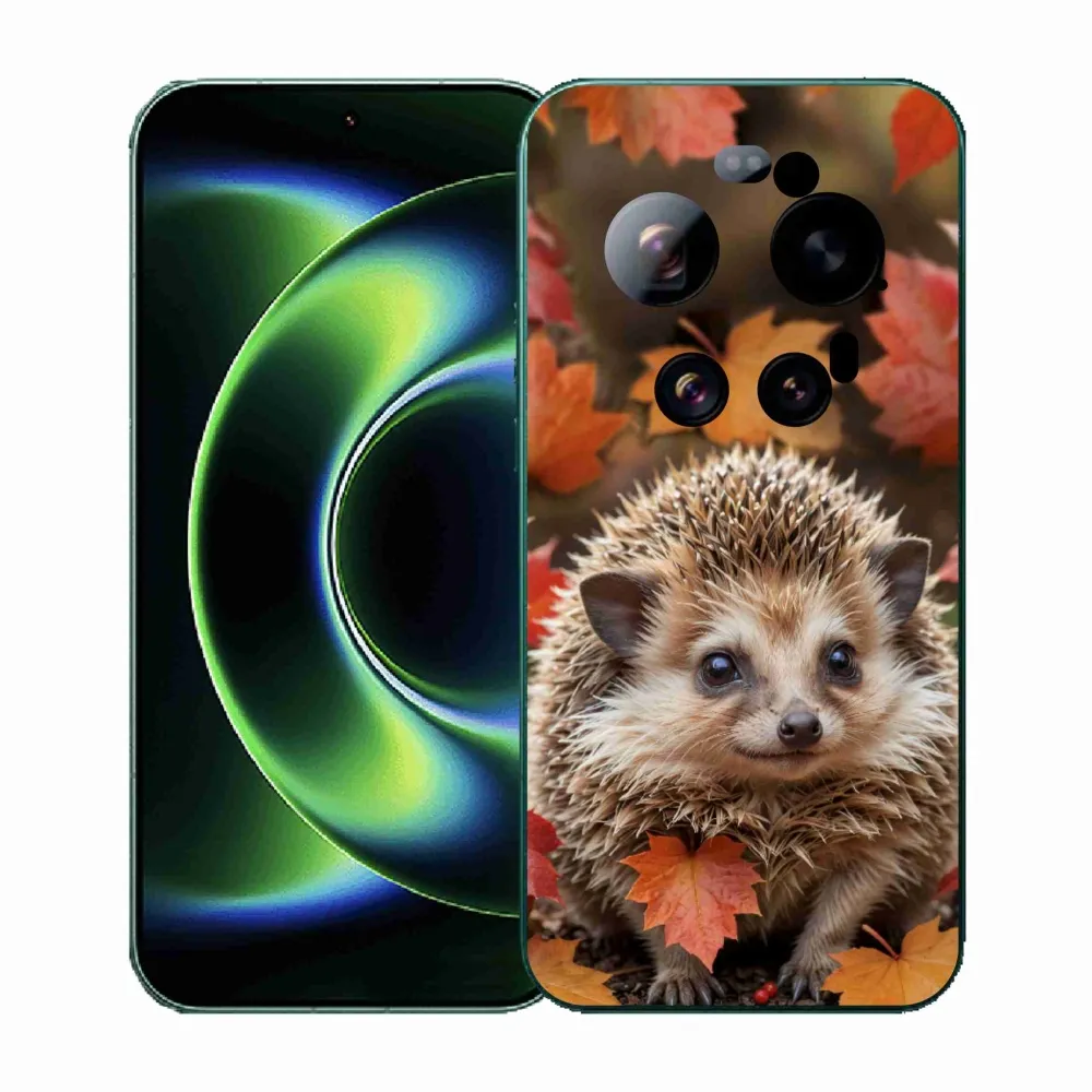 Zvieracie púzdro na Xiaomi 17 Ultra - ježko v lístí poskytuje všetky výhody gélových obalov, a to v zaujímavom dizajne.