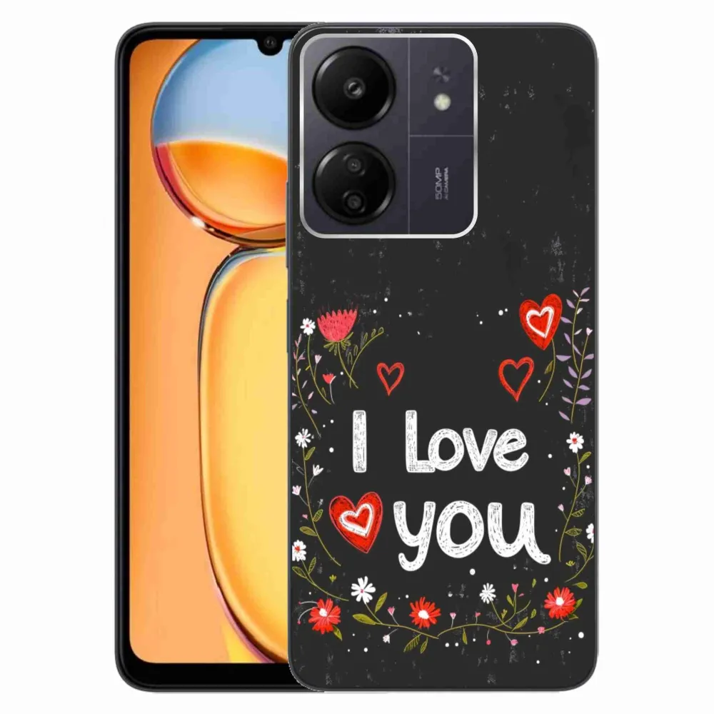 Púzdro na Xiaomi Poco C65/Redmi 13C - I love you čierne pozadie poskytuje všetky výhody gélových obalov, a to v zaujímavom dizajne.