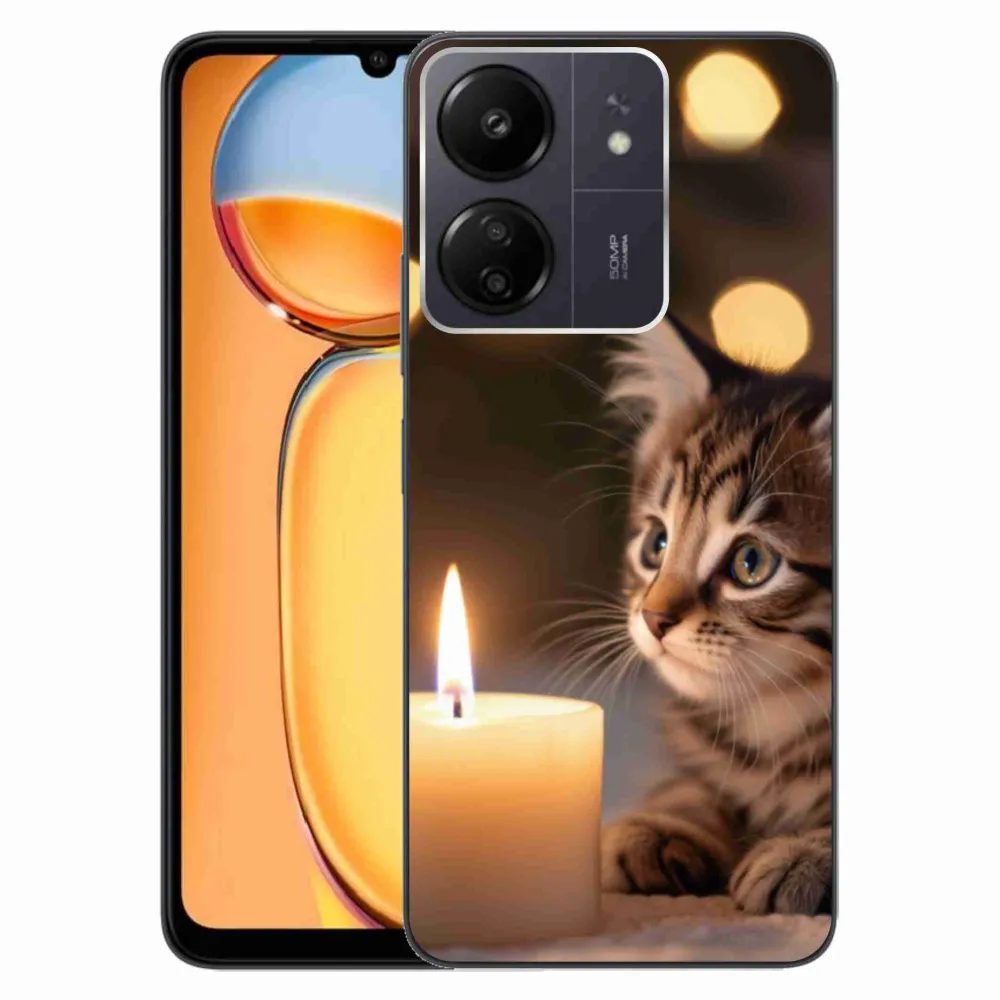 Pružný gélový obal mmCase s obrázkom na Xiaomi Poco C65/Redmi 13C - mačiatko a sviečka