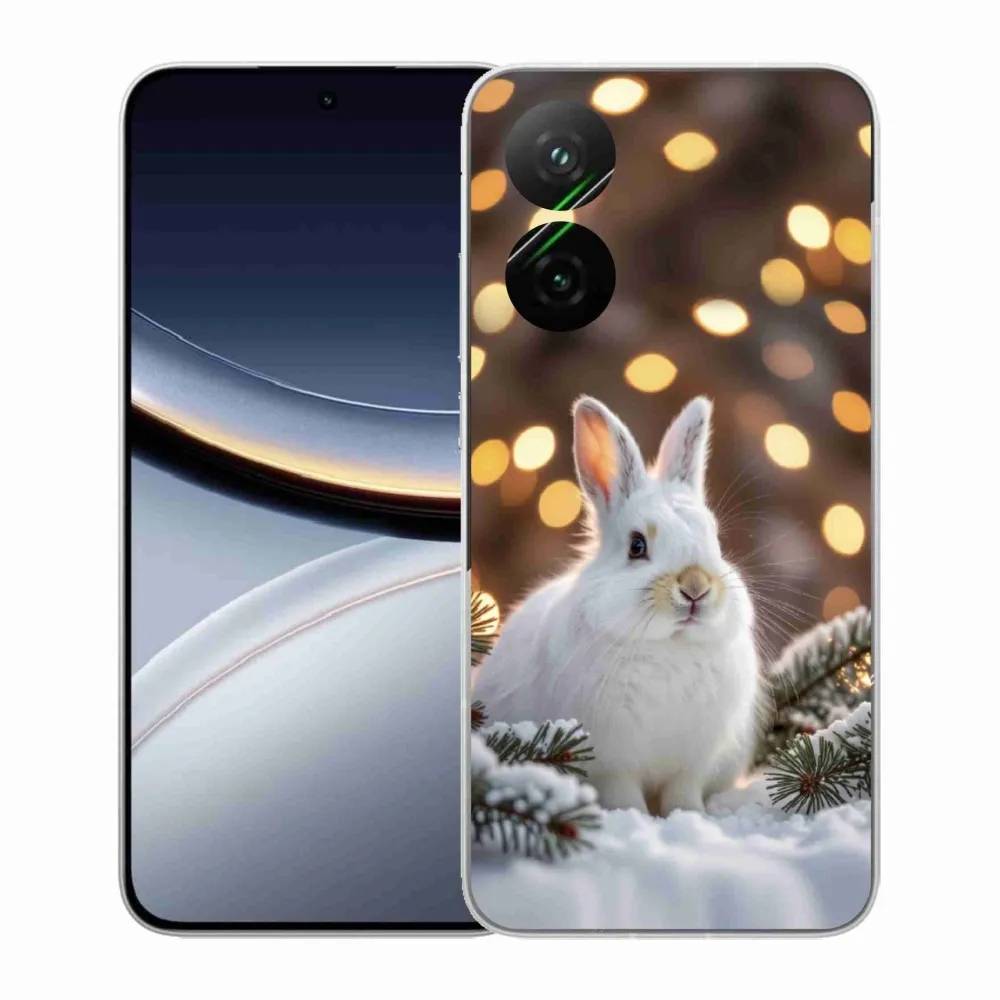 Pružný gélový obal mmCase s obrázkom na Xiaomi Poco F7 5G - biely zajac