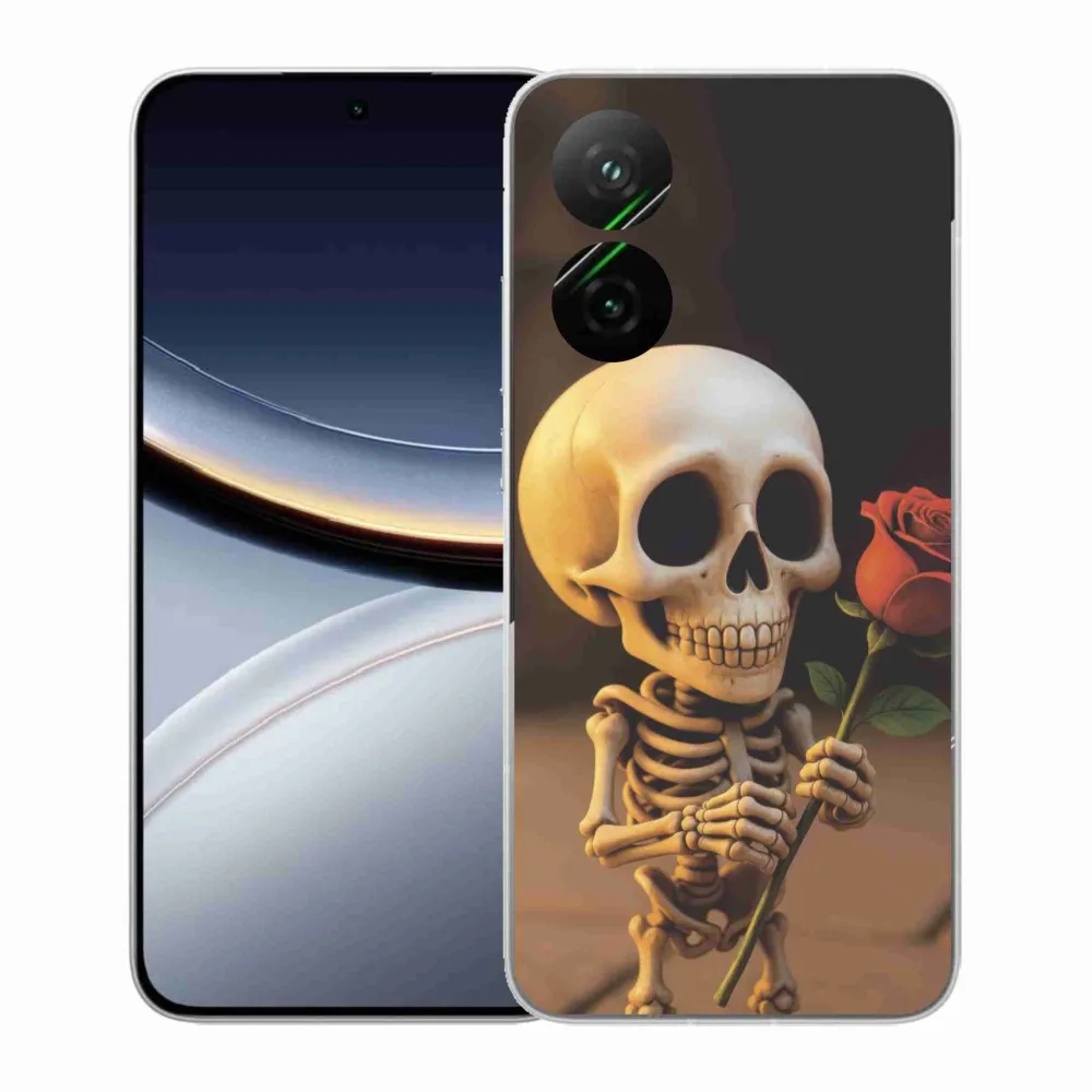 Púzdro na Xiaomi Poco F7 5G - kostlivec s ružou poskytuje všetky výhody gélových obalov, a to v zaujímavom dizajne.