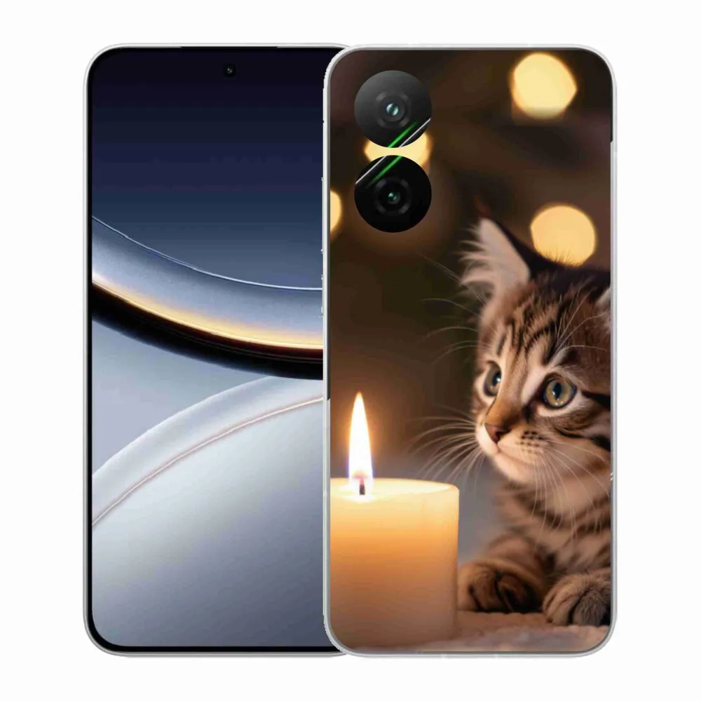 Pružný gélový obal mmCase s obrázkom na Xiaomi Poco F7 5G - mačiatko a sviečka