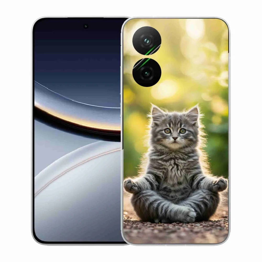 Mačacie púzdro na Xiaomi Poco F7 5G - meditujúce mačiatko poskytuje všetky výhody gélových obalov, a to v zaujímavom dizajne.