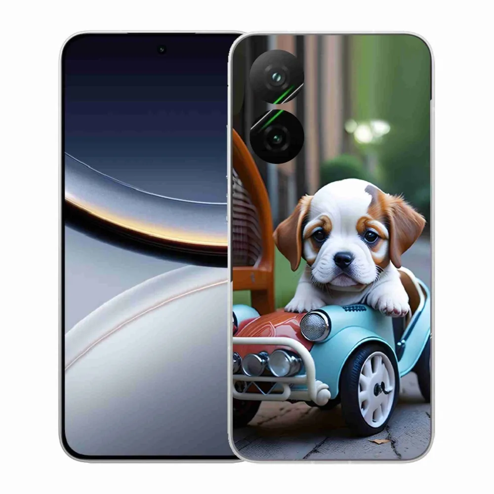 Gélový kryt mmCase na Xiaomi Poco F7 5G - šteňa v retro aute