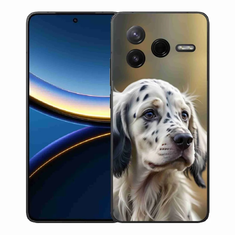 Psie púzdro na Xiaomi Poco F7 Pro - anglický seter poskytuje všetky výhody gélových obalov, a to v zaujímavom dizajne.
