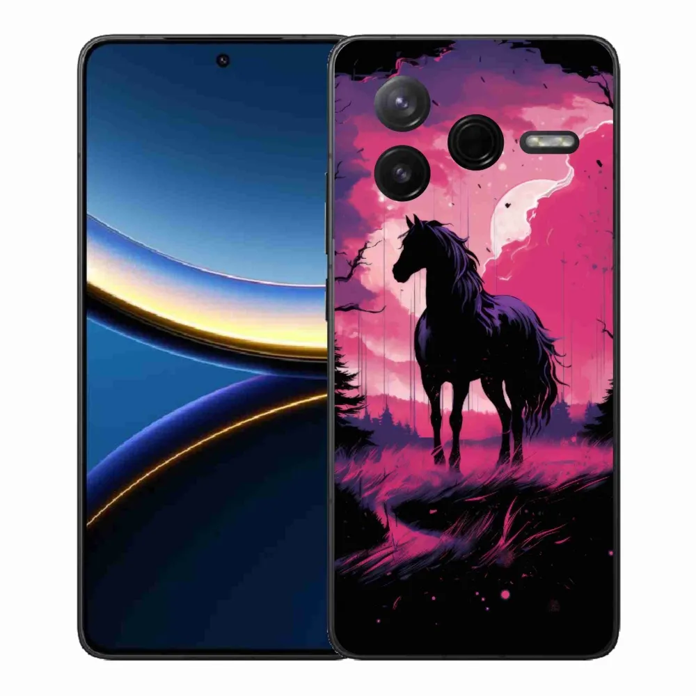 Gélový kryt mmCase na Xiaomi Poco F7 Pro - čierny kreslený kôň 1