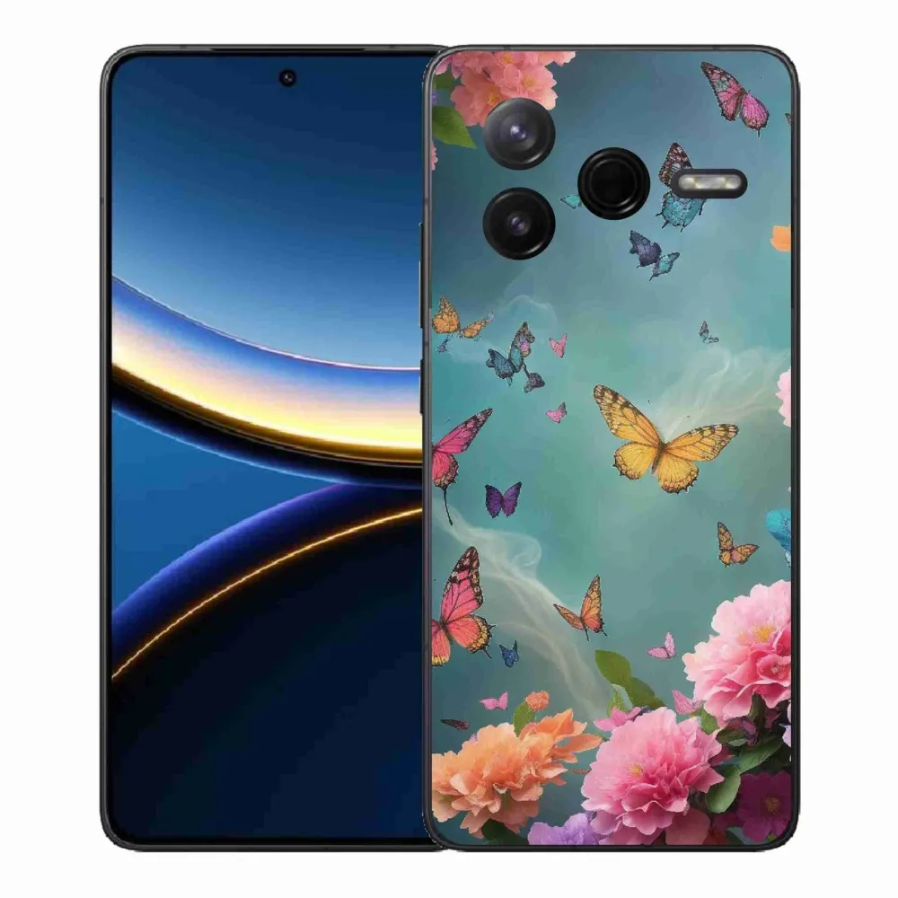 Kvetinové púzdro na Xiaomi Poco F7 Pro - farebné kvety a motýle poskytuje všetky výhody gélových obalov, a to v zaujímavom dizajne.