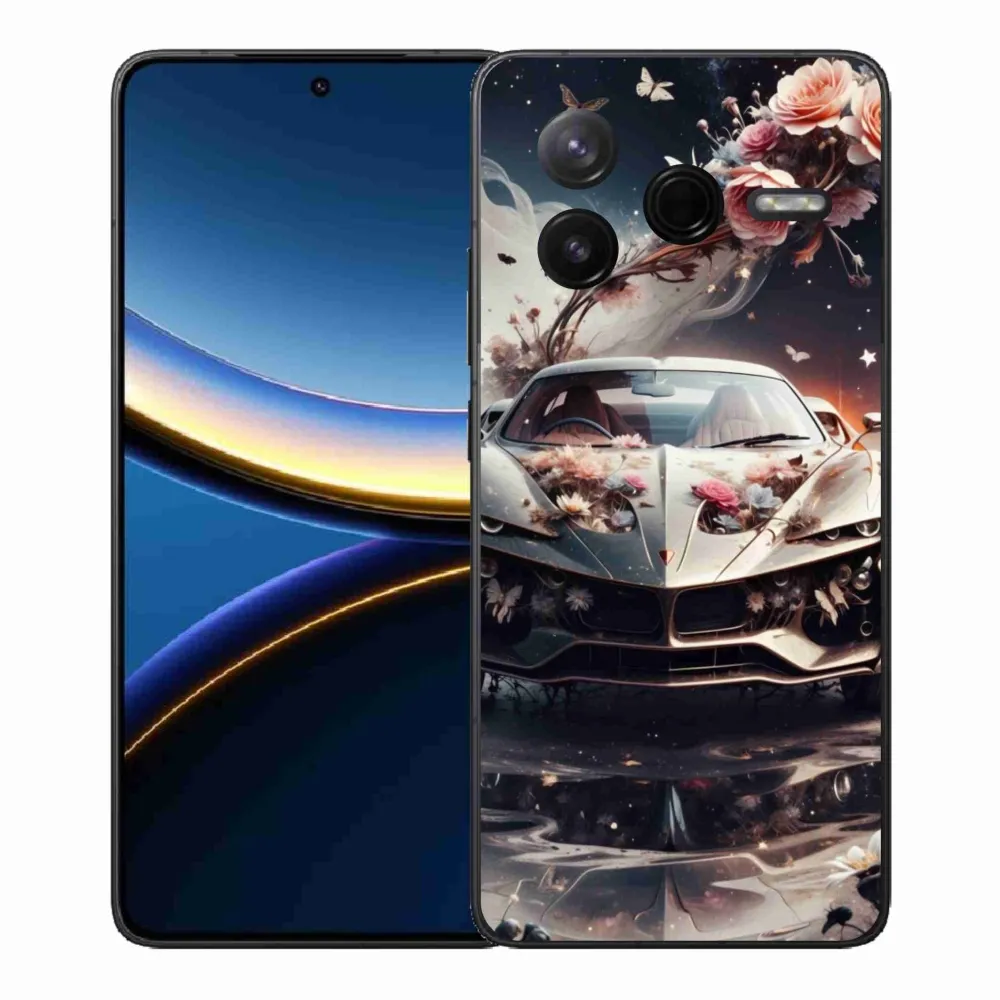 Puzdro na Xiaomi Poco F7 Pro - kvetinový športový automobil poskytuje všetky výhody gélových obalov, a to v zaujímavom dizajne.