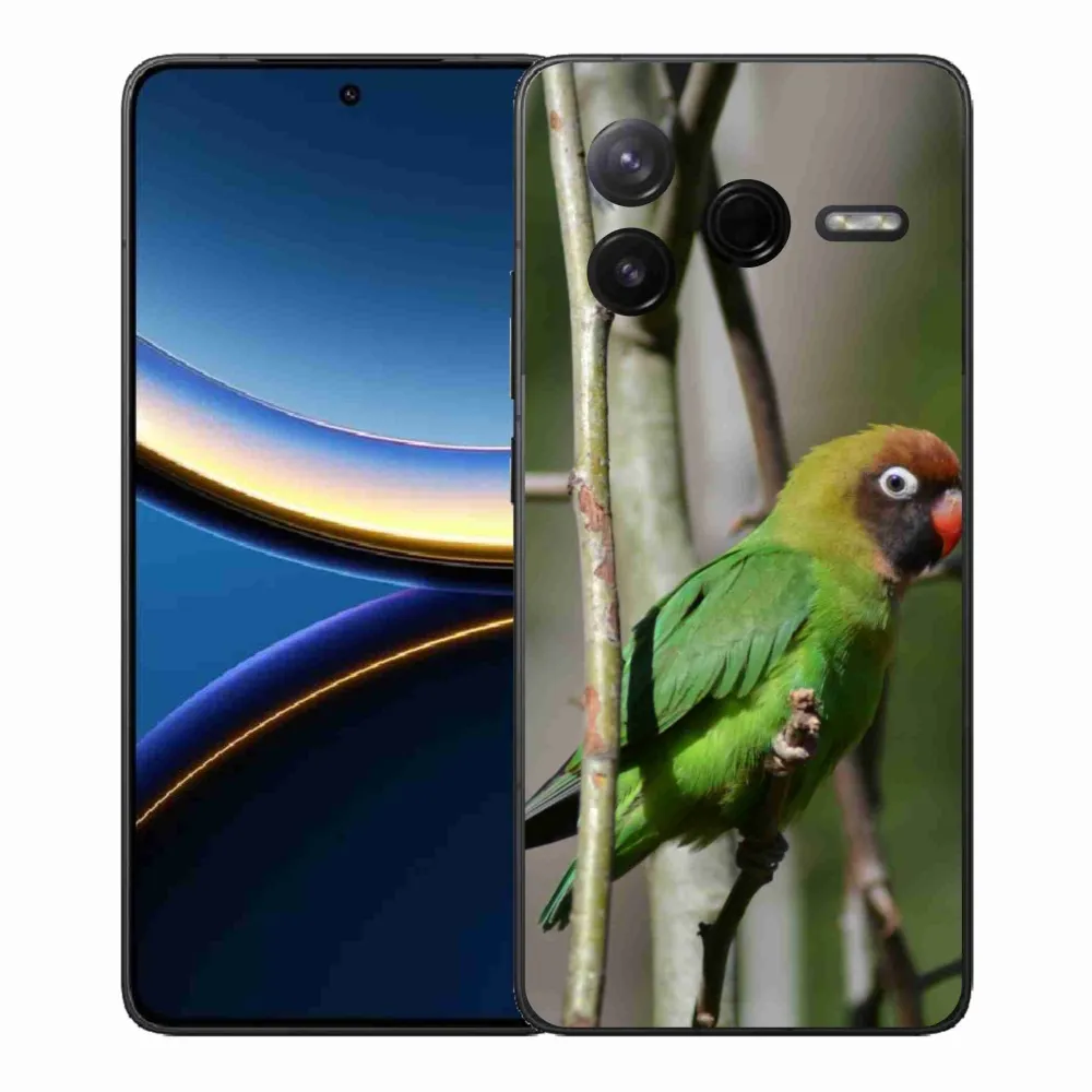 Zvieracie puzdro na Xiaomi Poco F7 Pro - papagáj agapornis poskytuje všetky výhody gélových krytov, a to v zaujímavom dizajne.