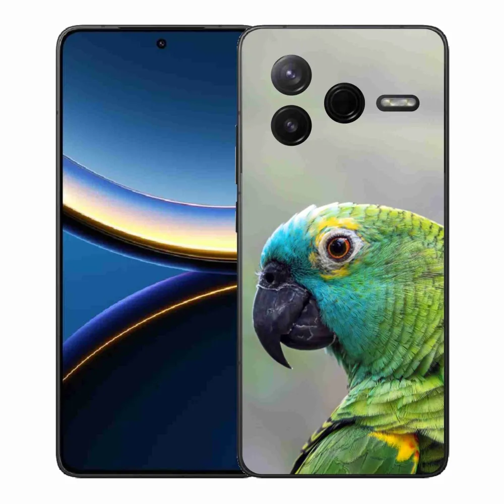 Zvieracie puzdro na Xiaomi Poco F7 Pro - papagáj amazoňan poskytuje všetky výhody gélových krytov, a to v zaujímavom dizajne.