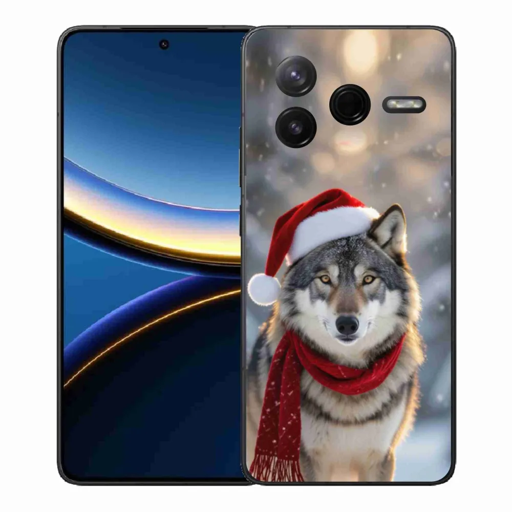 Vianočné puzdro na Xiaomi Poco F7 Pro - vianočný vlk poskytuje všetky výhody gélových obalov, a to v zaujímavom dizajne.