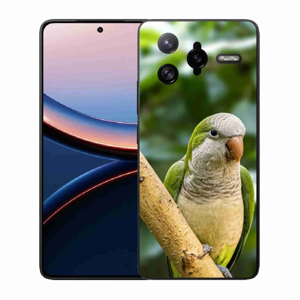 Zvieracie puzdro na Xiaomi Poco F7 Ultra - papagáj mníšok poskytuje všetky výhody gélových krytov, a to v zaujímavom dizajne.