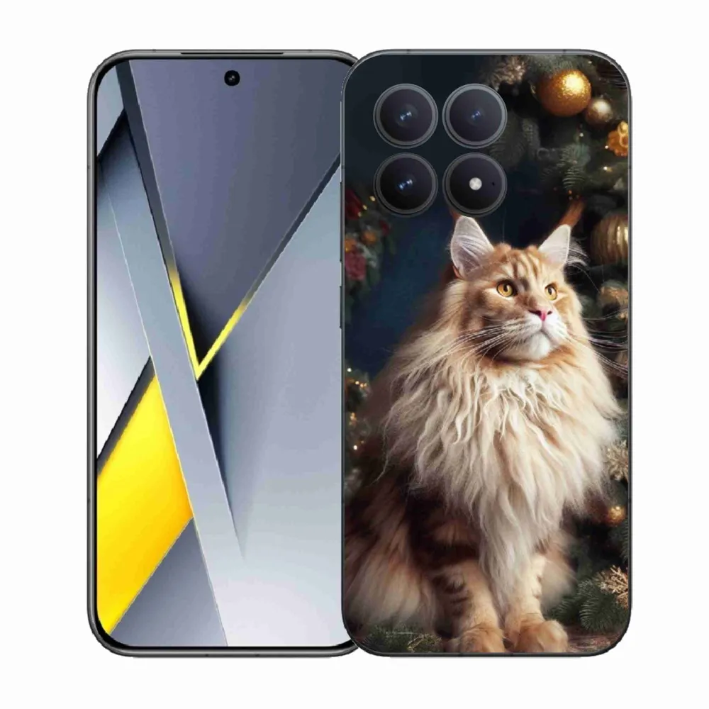 Vianočné puzdro na Xiaomi Poco F8 Pro – mačka pri stromčeku poskytuje všetky výhody gélových krytov, a to v zaujímavom dizajne.