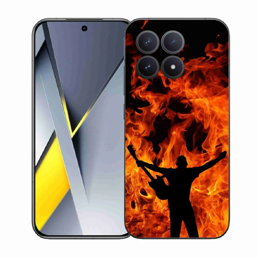 Púzdro s motívom muzikant a oheň na Xiaomi Poco F8 Pro poskytuje všetky výhody gélových obalov, a to v zaujímavom dizajne.