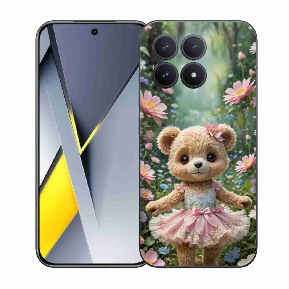 Zvieracie púzdro na Xiaomi Poco F8 Pro - roztomilý medvedík v kvetoch poskytuje všetky výhody gélových obalov, a to v zaujímavom dizajne.