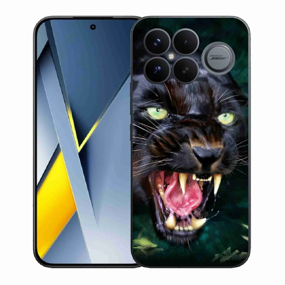 Púzdro so šelmou na Xiaomi Poco F8 Ultra - rozzúrený černý panter poskytuje všetky výhody gélových krytov, a to v zaujímavom dizajne.