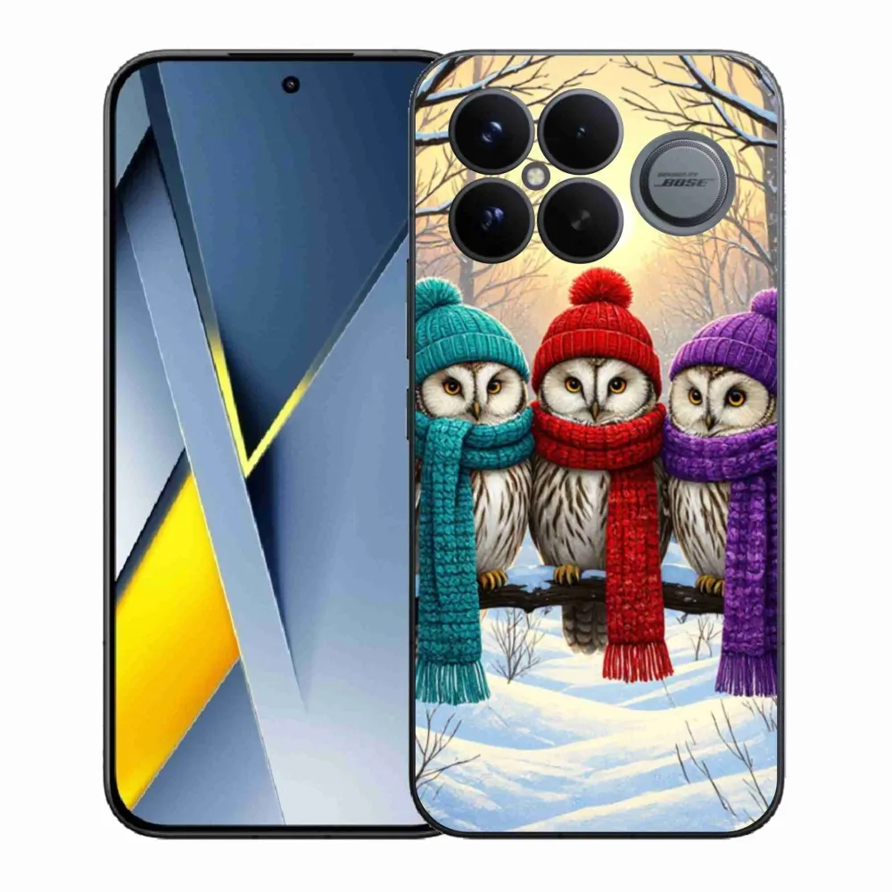 Vianočné puzdro na Xiaomi Poco F8 Ultra - soví priatelia poskytuje všetky výhody gélových obalov, a to v zaujímavom dizajne.