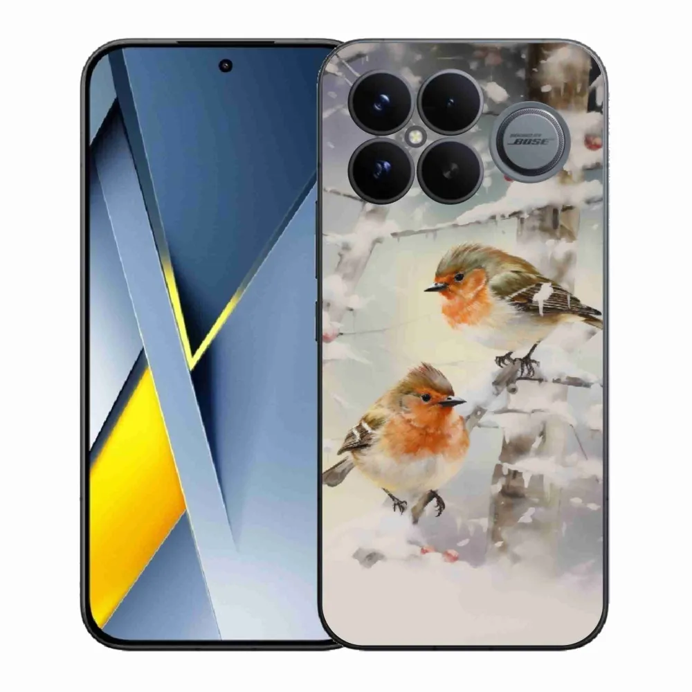 Zvieracie púzdro na Xiaomi Poco F8 Ultra – vtáčiky v zime poskytuje všetky výhody gélových obalov, a to v zaujímavom dizajne.