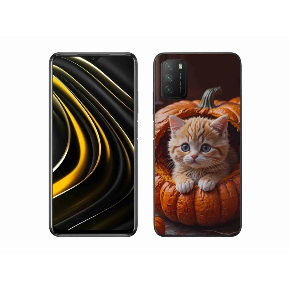 Pružný gélový obal mmCase s obrázkom na Xiaomi Poco M3 - mačiatko a tekvica 2