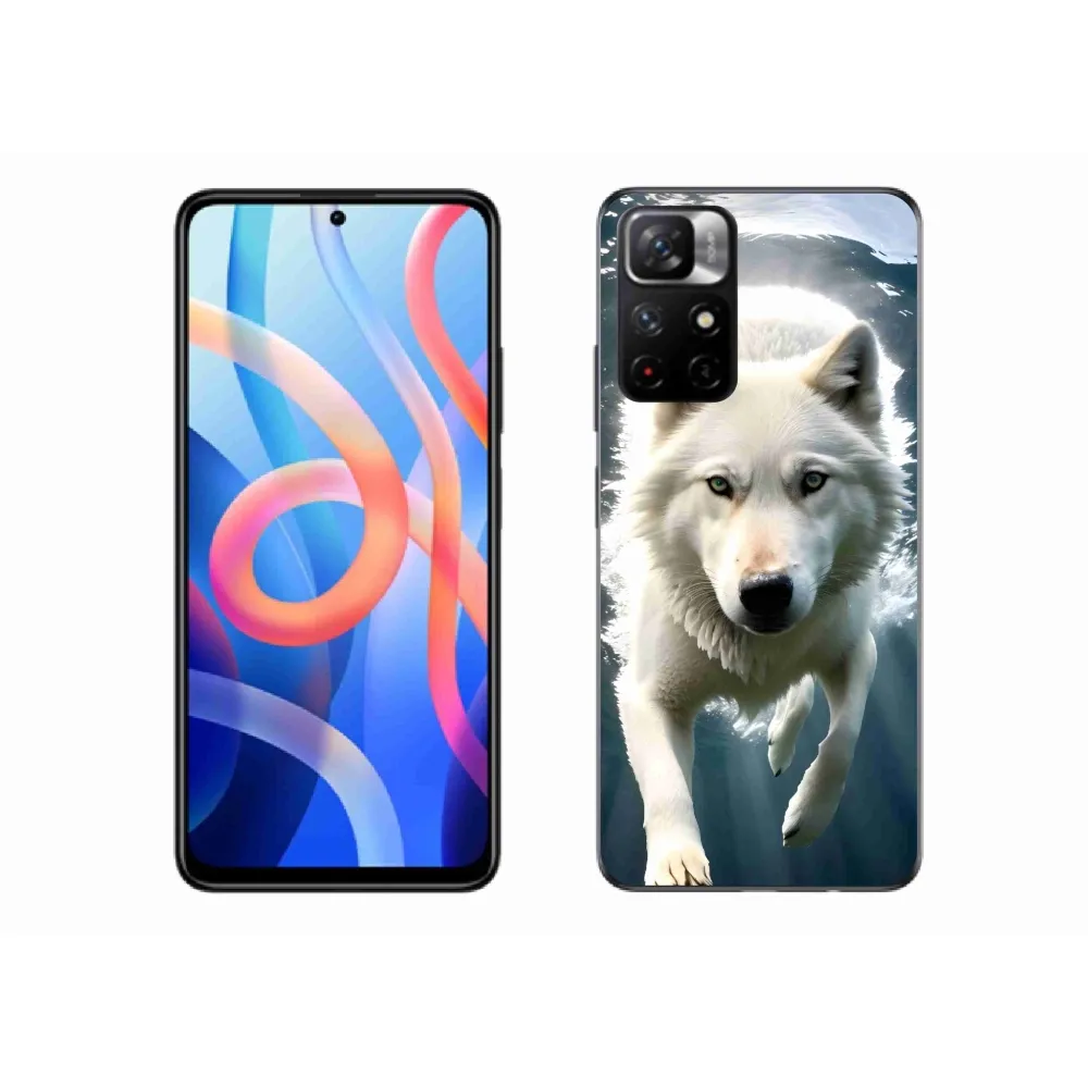 Púzdro so šelmou na Xiaomi Poco M4 Pro 5G - bílý vlk poskytuje všetky výhody gélových krytov, a to v zaujímavom dizajne.